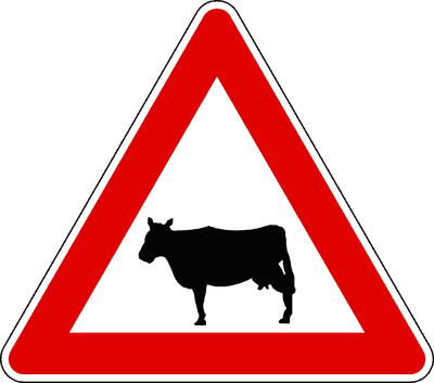 Il segnale raffigurato preannuncia un tratto di strada con probabile attraversamento di animali domestici