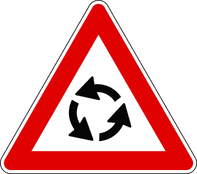 Il segnale raffigurato preannuncia un incrocio di due o più strade extraurbane regolato con circolazione rotatoria