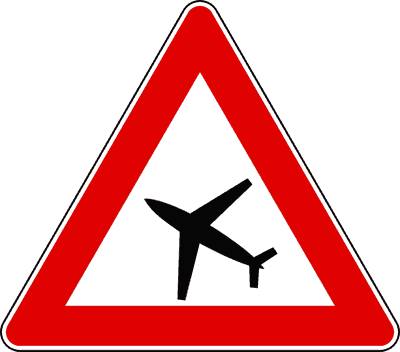 Il segnale raffigurato preannuncia la possibilità di un improvviso abbagliamento dovuto ad aeroplani a bassa quota