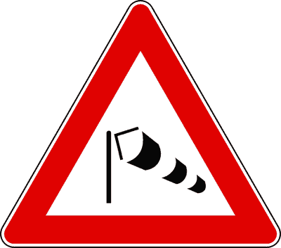 Il segnale raffigurato presegnala un tratto di strada soggetto a forti raffiche di vento laterale