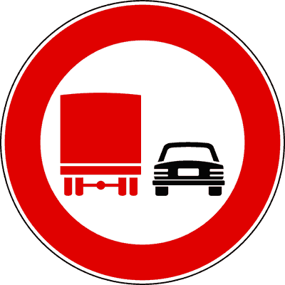 Il segnale raffigurato vieta ai  veicoli  di massa a  pieno  carico    superiore  a 3,5 tonnellate non destinati al trasporto di persone, di  sorpassare    veicoli  a motore