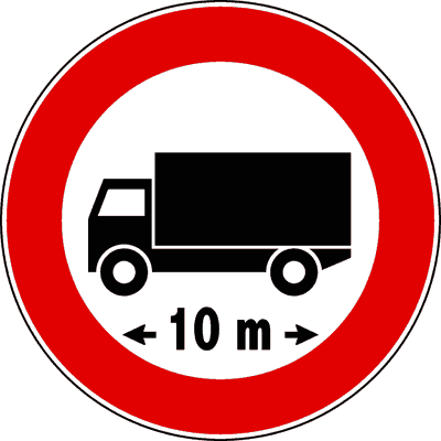 Il segnale raffigurato vieta il transito a tutti i veicoli di lunghezza complessiva superiore a 10 metri