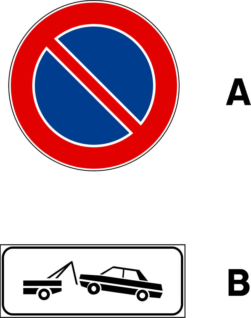 Il segnale (A), se integrato con pannello (B), indica una zona in cui vige divieto di sosta