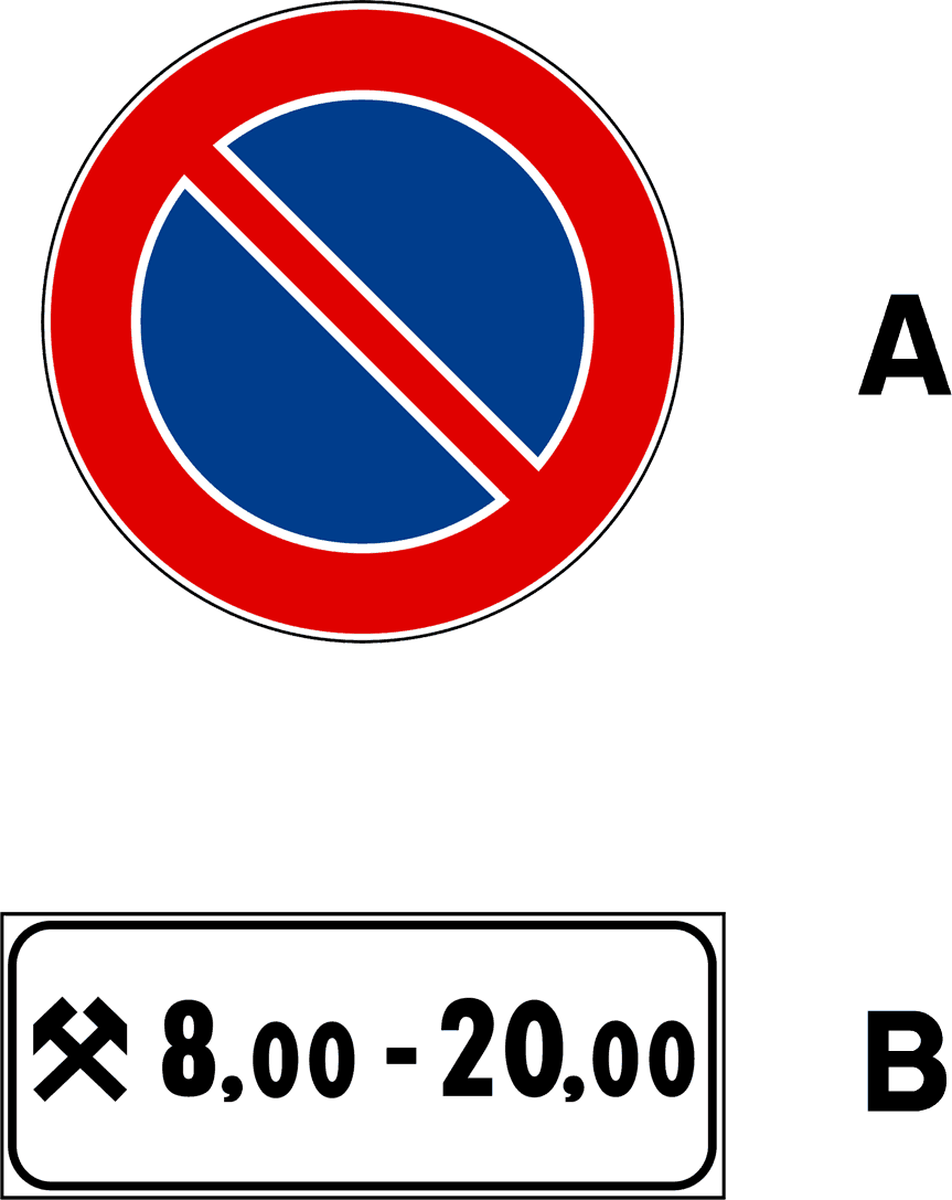 Il segnale (A) con il pannello (B) vieta lasostasolonei giorni lavorativi