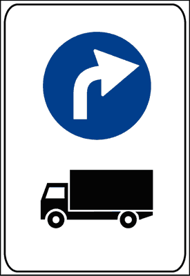 Il segnale raffigurato  preannuncia  una  svolta  obbligatoria a destra per gli  autocarri  di massa  superiore  a 3,5 t