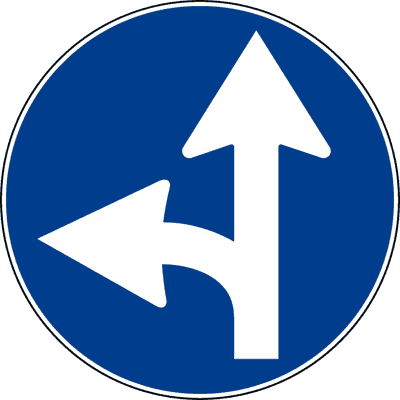 Il segnale raffigurato consente solo di proseguire diritto o svoltare a sinistra