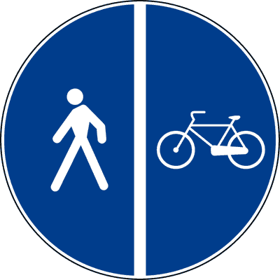 Il segnale raffigurato è posto in corrispondenza dell'inizio di una  pista  ciclabile  accanto  al marciapiede