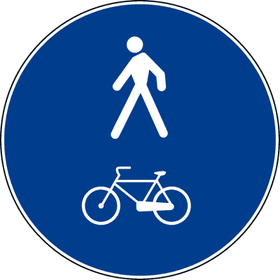 Il segnale raffigurato è posto in corrispondenza di un percorso unico per  pedoni  e ciclisti