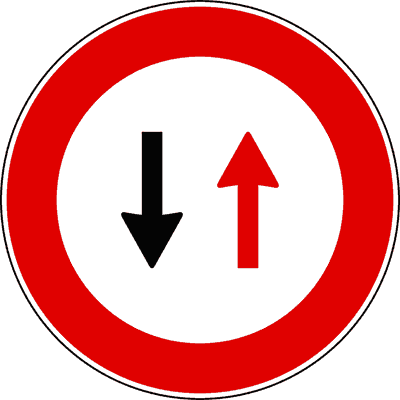Il segnale raffigurato impone , nelle strettoie, di dare precedenza ai veicoli provenienti dal senso opposto