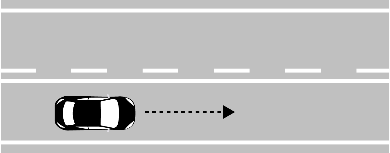 Rispetto al veicolo che procede nel senso della freccia, la striscia continua centrale in figura si trova prima di una curva