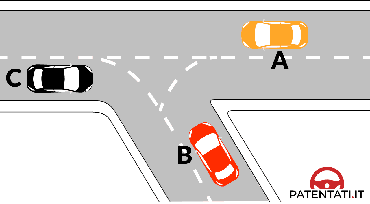 In presenza delle strisce di  guida  in figura il veicolo C può andare diritto