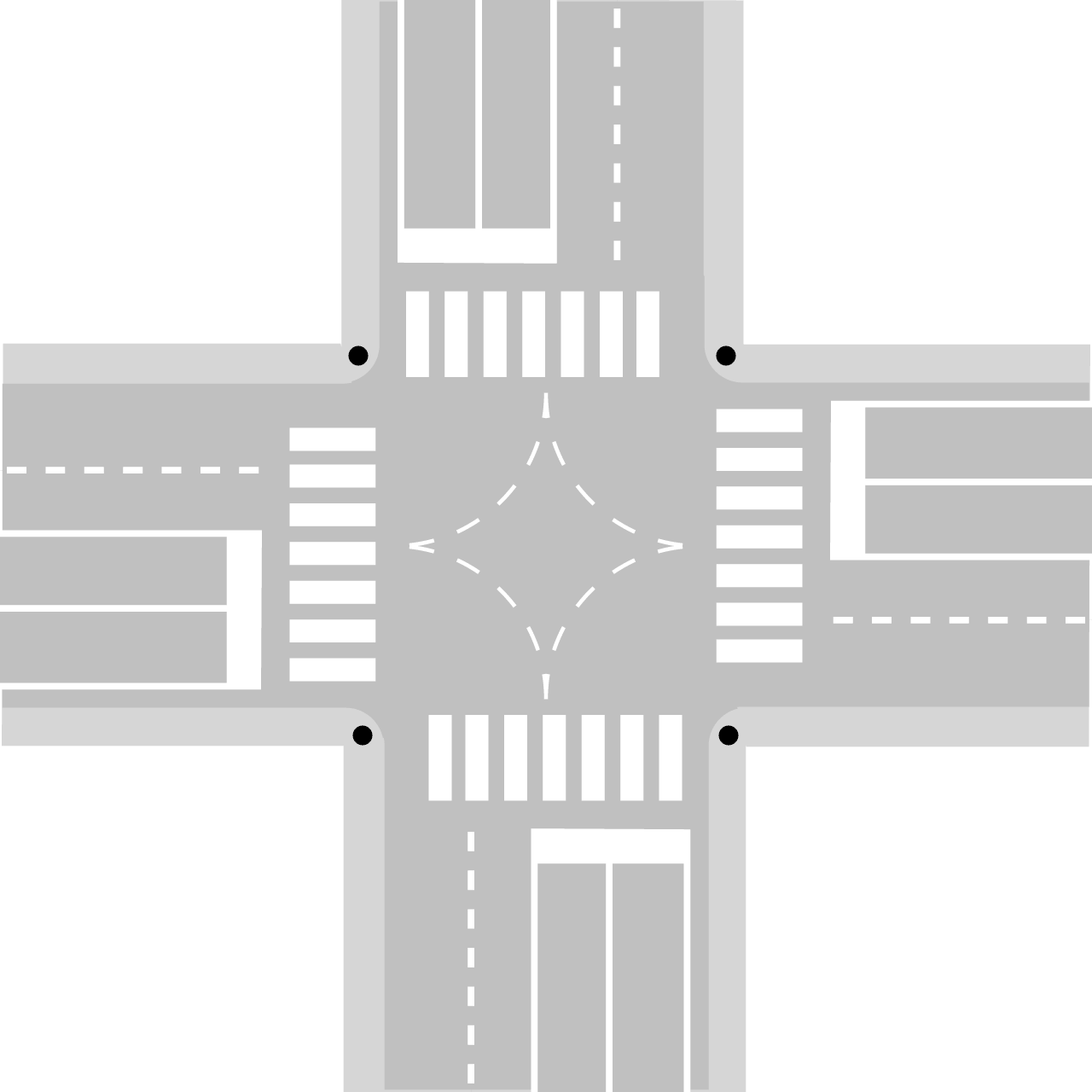 Le strisce di guida in figura, sono strisce curve discontinue (tratteggiate) di colore bianco