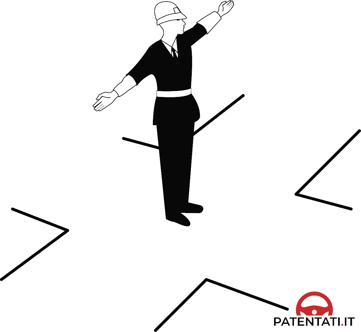Quando il vigile si dispone di profilo con le braccia aperte come in figura è consentito il passaggio delle correnti di traffico che scorrono parallele alle sue braccia