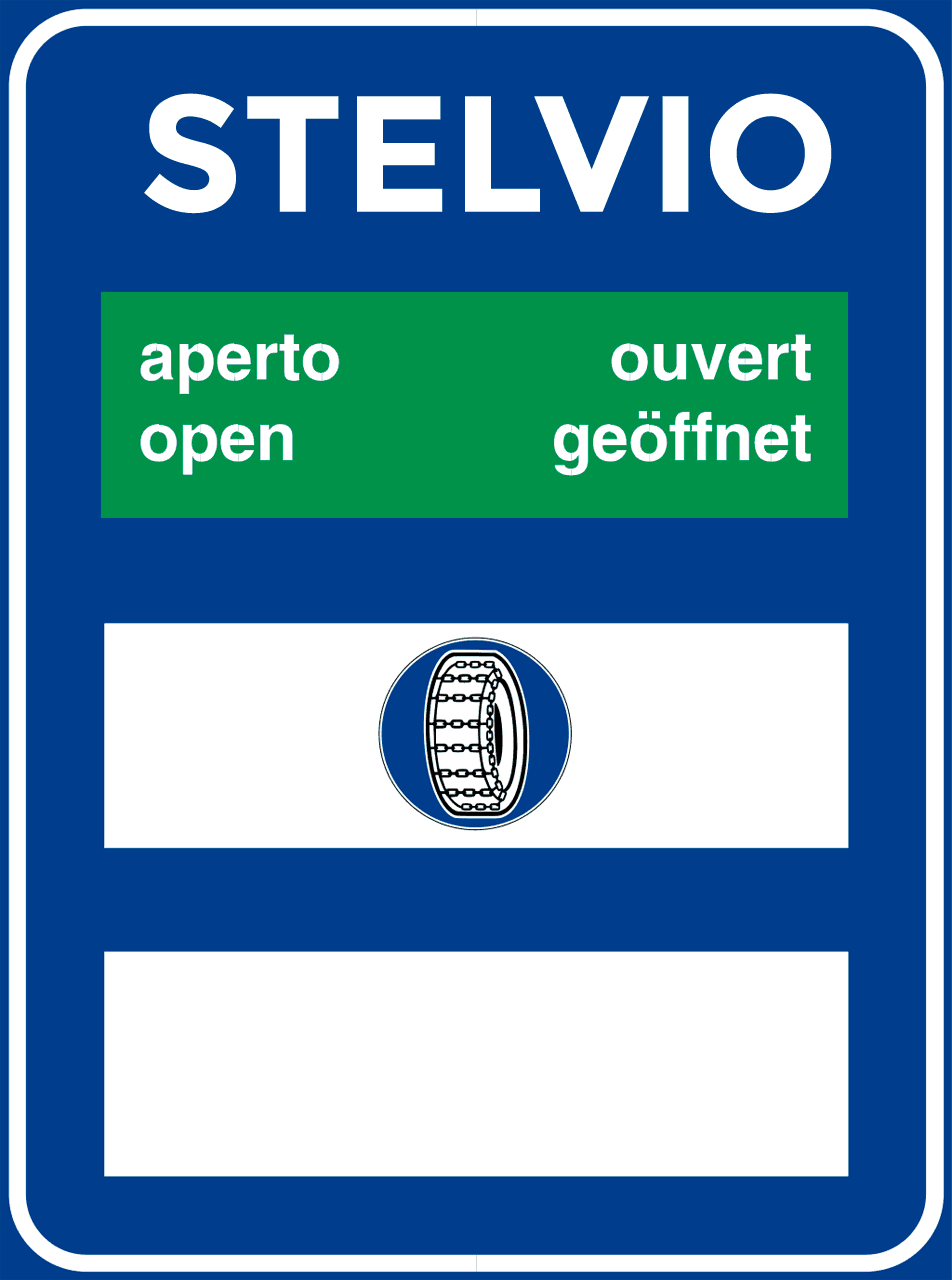 Il segnale raffigurato permette di conoscere le condizioni di transitabilità del passo dello Stelvio