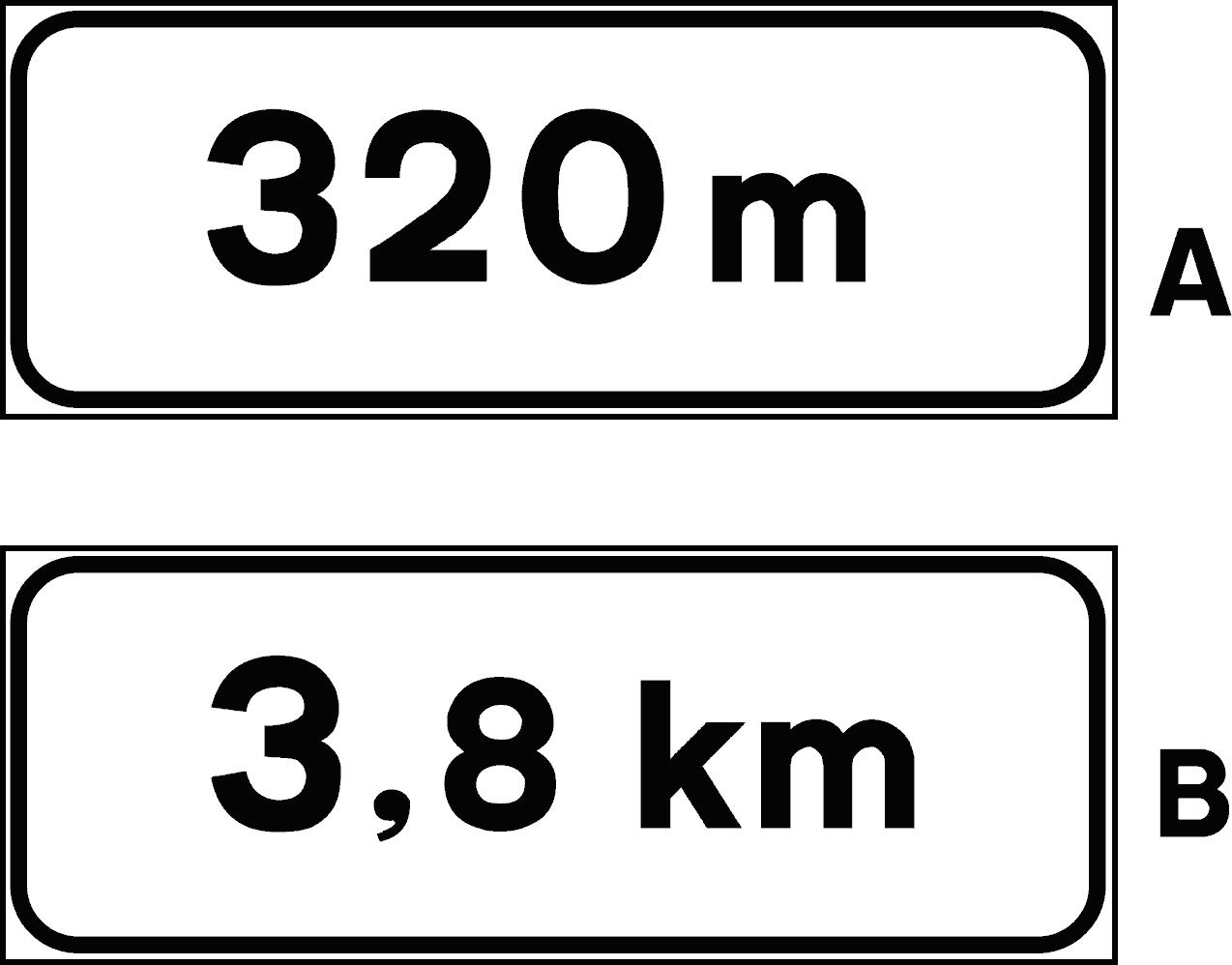 Il pannello integrativo raffigurato, posto sotto un segnale di pericolo, indica la distanza tra il segnale ed il punto d'inizio del pericolo