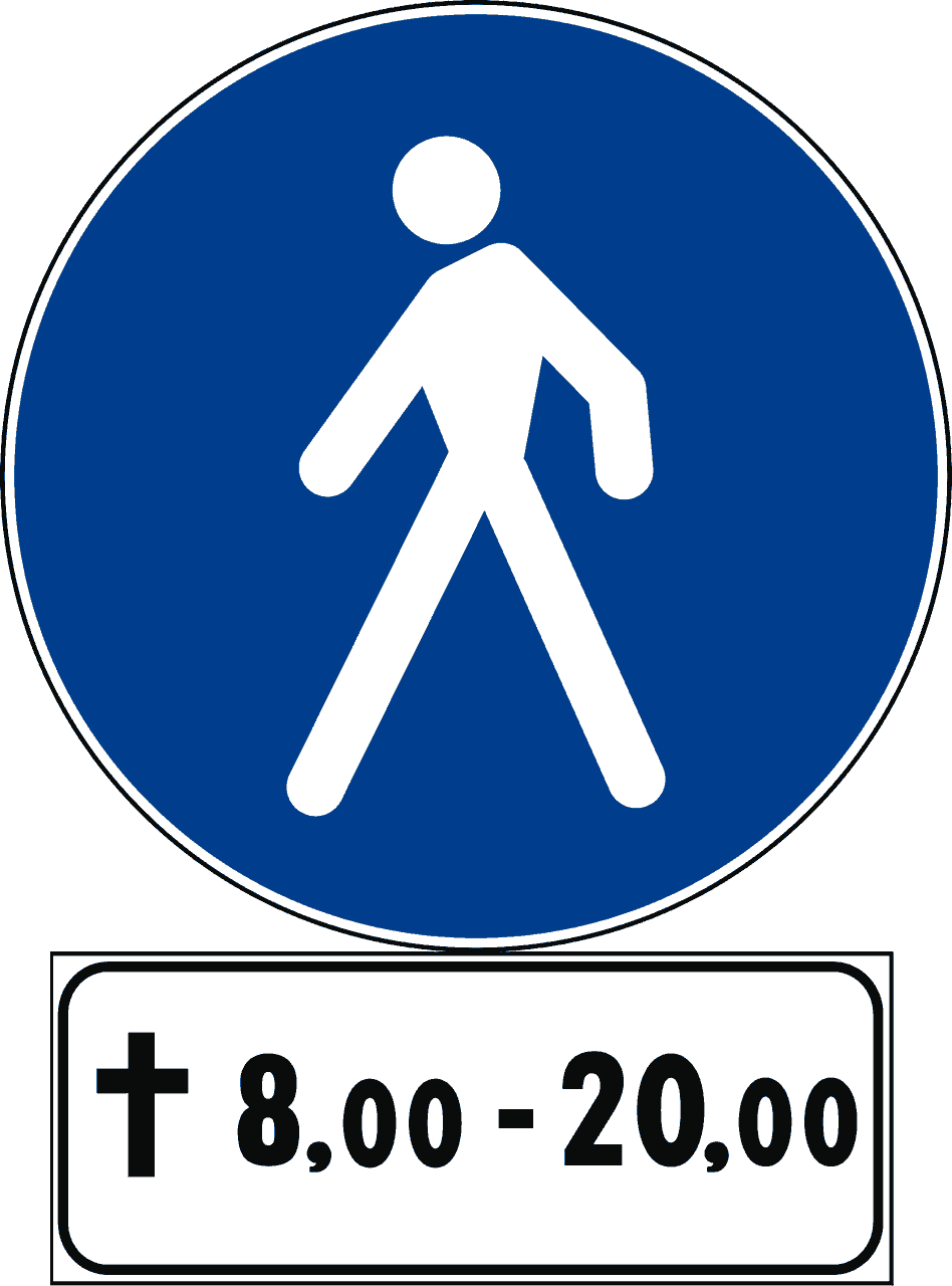 Il segnale raffigurato consente il transito nei giorni festivi e nelle fasce orarie indicate ai soli pedoni