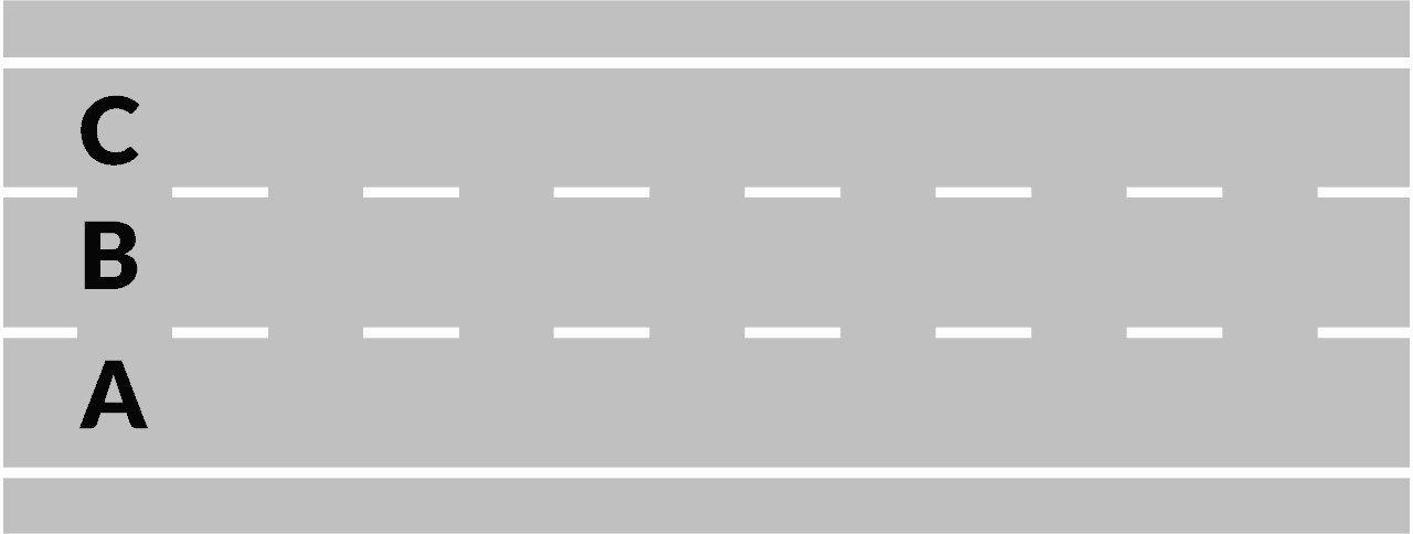In condizioni di traffico intenso su carreggiata a 6 a tre corsie, come in figura, è consentito viaggiare per file parallele